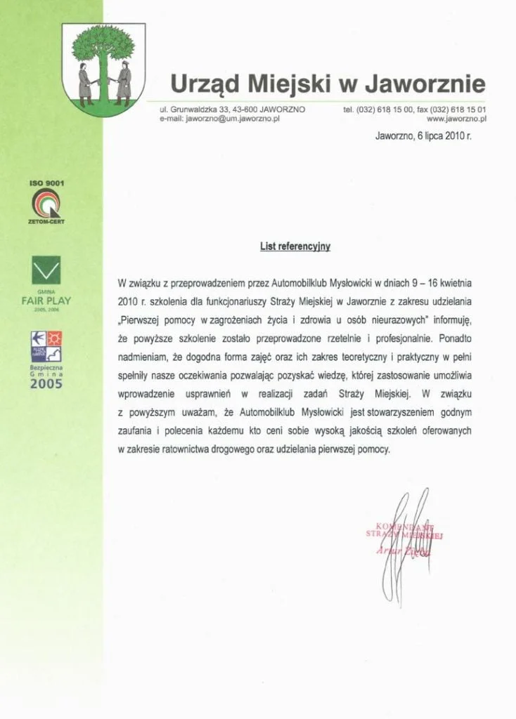 • organizacja pokazów udzielania pierwszej pomocy z udziałem służb porządkowych na terenie miast Mysłowice oraz Jaworzno (1994-2005)